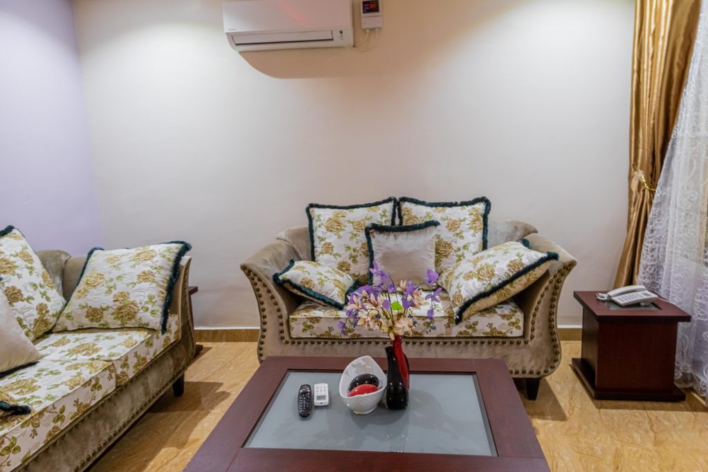 The king wing is package for great comfort; with Sofas, Tea Table, kitchen and a bathroom with jacquzzi.